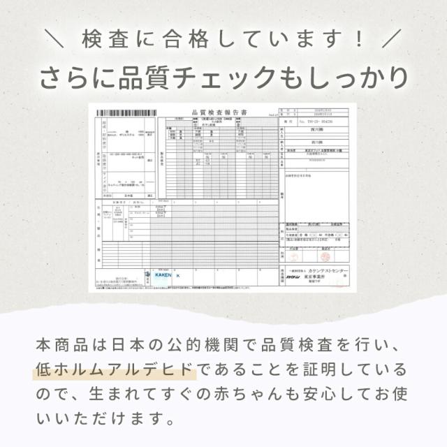・固わた敷きふとん 中わたがおよそ700g入った敷き布団。厚みは約2〜2.5cmと大人から見ると薄いですが、小さなお子さまのお昼寝用には十分な厚みです。その薄さと軽さからお子さま自身でも片付けやすい!※使い始めは折りにくいですが、二つ折りにも対応します。 ・便利なネームタグ付き「くみ」「なまえ」を書き込めるネームタグ付き。大きめなのでひと目で分かりやすく、書きやすいです。 ・洗濯機で洗えて清潔コンパクトに畳めるので洗濯機でお洗濯OK。忙しい家事や育児に大助かりです。※ドラム式洗濯機では洗えない場合があります。※お洗濯の際は洗濯ネットを使用し、洗濯表示をよくご確認ください。 ・信頼のクオリティ 西川の日本製西川株式会社は日本最大手の寝具メーカー。長年培った経験と技術に裏打ちされた品質で、赤ちゃんの肌に直接触れるものだからこそ安心してお使いいただけます。 ・無蛍光素材で安心・安全生地の白さを引き立てる蛍光塗料で染める工程を省きました。「白さ」ではなく、「生まれたばかりの赤ちゃんが安心して使える優しさ」を選びました。 ・検査に合格しています(品質チェックもしっかり)日本の公的機関で品質検査を行い、低ホルムアルデヒドであることを証明。生まれてすぐの赤ちゃんも安心してお使いいただけます。 |