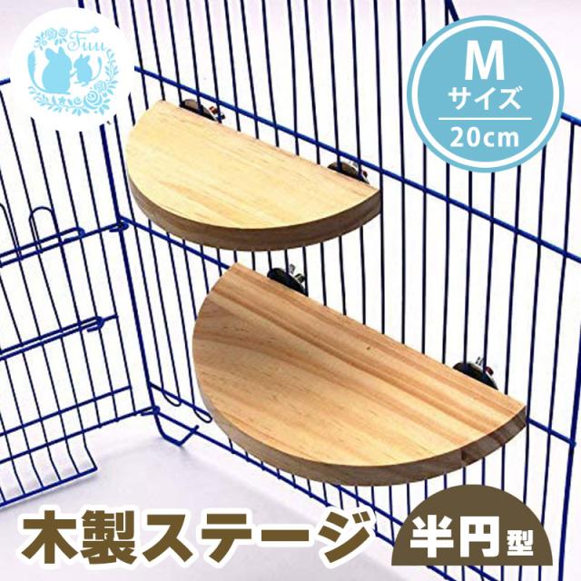 fuu 木製ステージ 半円型 Mサイズ 固定具付き コーナー ステップ 休み場 遊び場 リラックス 小動物 うさぎ チンチラ デグー ハムスター ハリネズミ