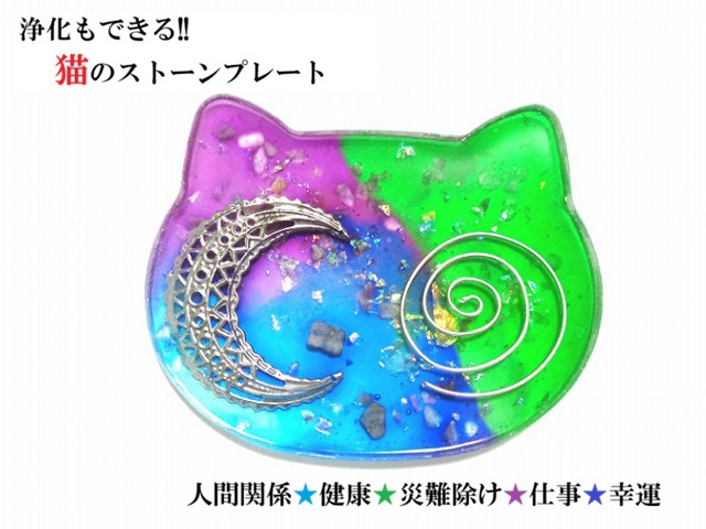 天然石やアクセサリーの浄化、空間の浄化もできるネコ型のストーンプレートです。