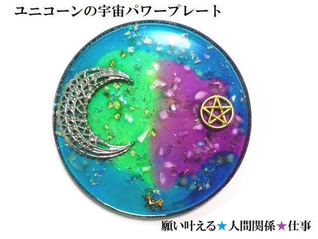 人間関係・夢を叶える・仕事・運氣回復☆アメジスト・フローライト・ペリドット・ヒマラヤ産水晶★M★ユニコーン・月・太陽・五芒星★ストーンプレート★アクセサリー浄化可能★パワーストーン★護符(霊符)