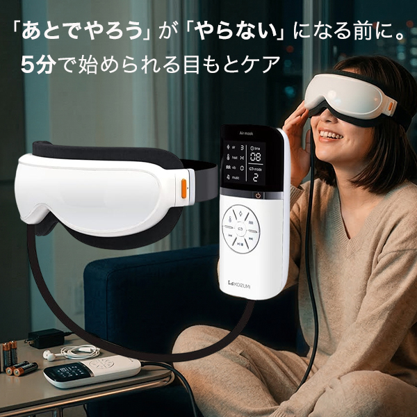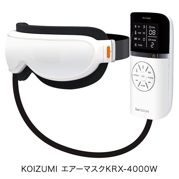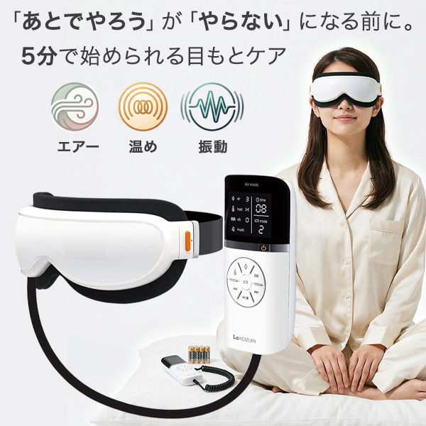アイマスク エアーマスク 目の疲れに 目もとケア アイマッサージャー エア 温め 振動 7モード タイマー 2電源 電池対応 音楽再生 海外対応 コイズミ KRX-4000