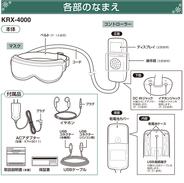 | ACアダプター | KTH-9011/DC6V 800mA/コード長約1.8m |