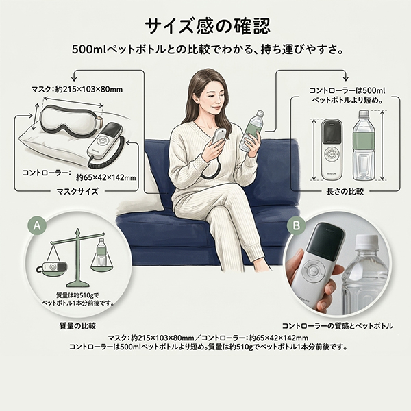 ・必ずベルトでマスクを固定し、目を閉じてリラックスした状態で使用してください。