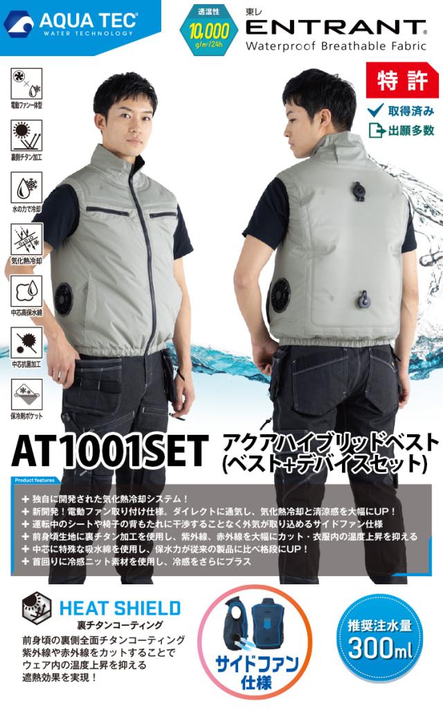 2026年新商品 ビッグボーン アクアハイブリッドベストセット AT1001SET ウォーターベスト/バッテリー/ファンの3点セット 空調作業ウォーターベスト 注水量300ml 春夏猛暑対策水冷ベスト