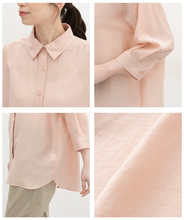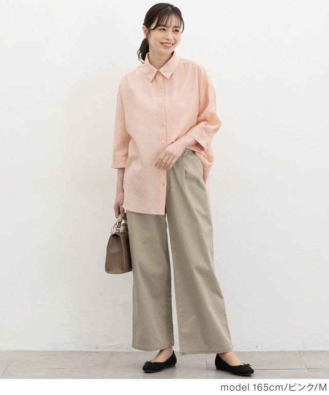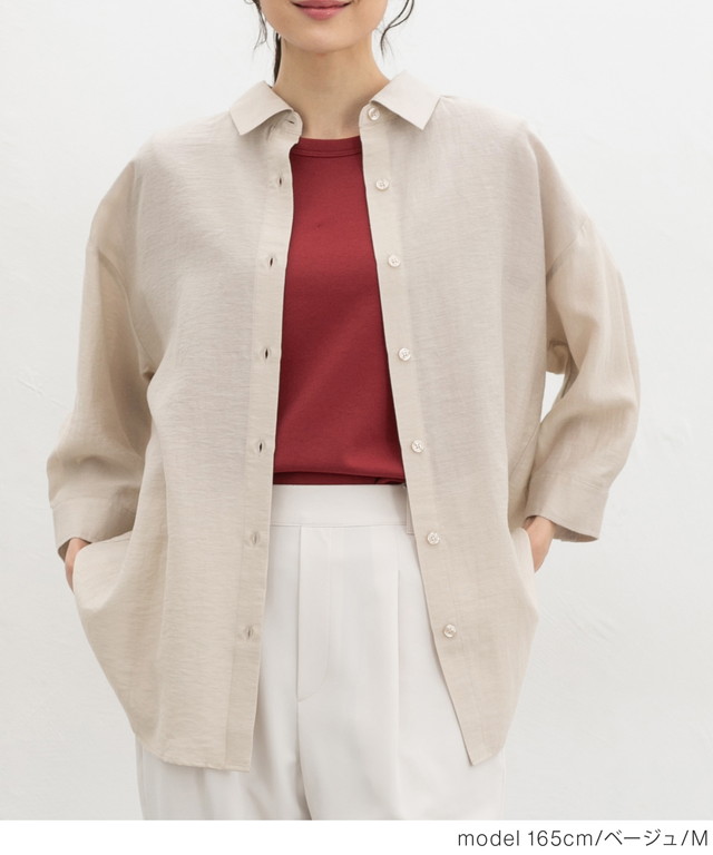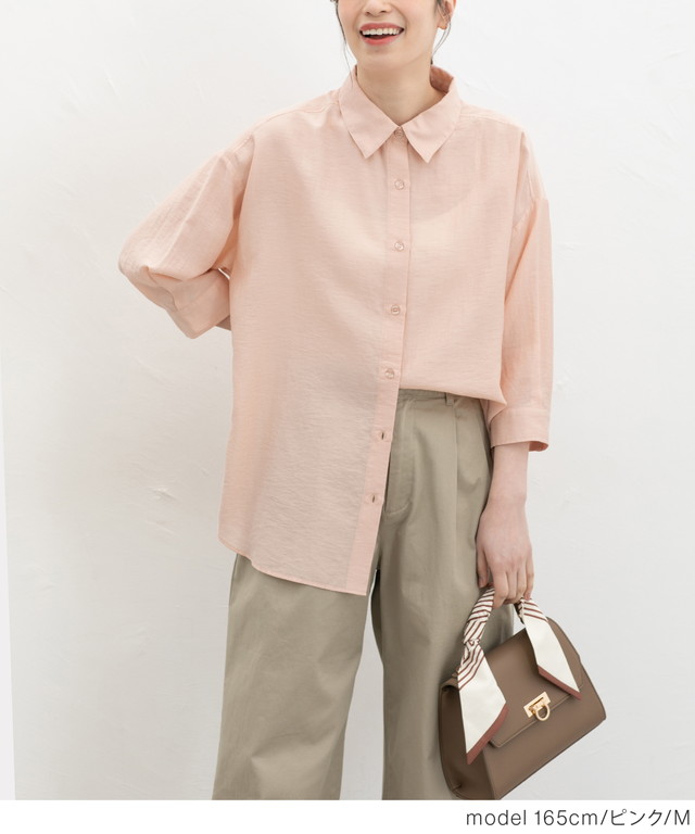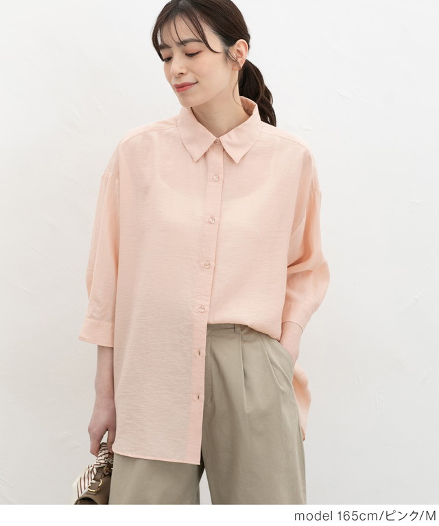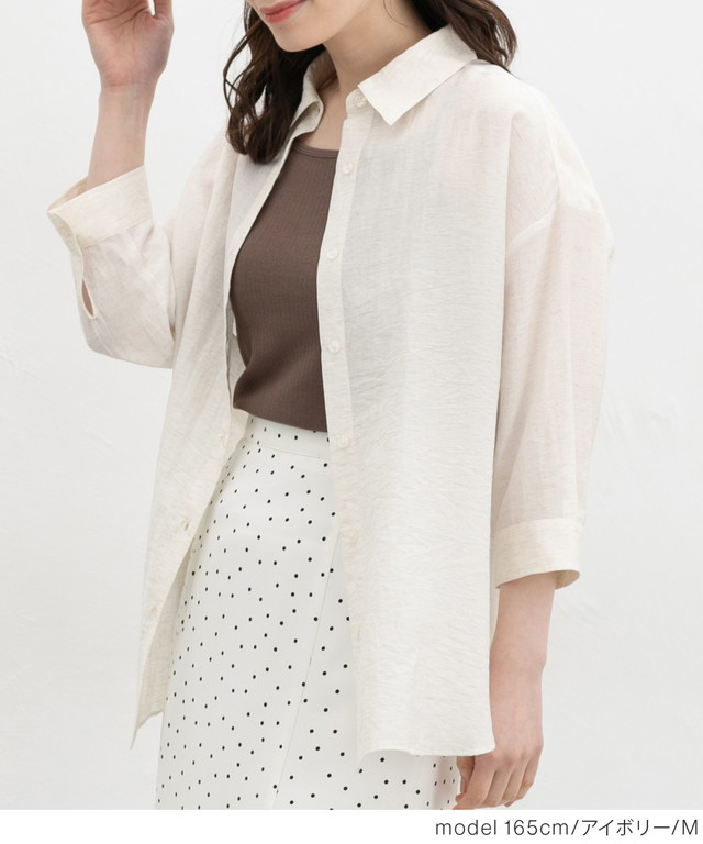 トップス シャツ ブラウス ハニさら 接触冷感 レギュラーカラー ゆったり レーヨン混 シワ残し フロントボタン レディース Honeys ハニーズ 7分袖ゆるシャツ