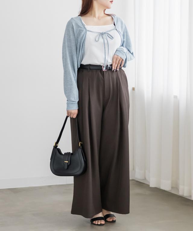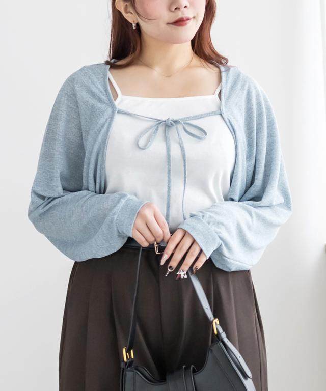 | 3Lサイズを着ていつも通りの着心地でした。薄めでやわらかいシアー生地が軽いし伸びもありラクチンな着用感でした!少し短めの着丈になっていてスタイルアップして見えるデザインです!透け感があるボレロなのでインナー次第で長いシーズン使えるのもポイント!ガーリーなスカートやワンピース合わせなどにはもちろん、デニムなどのカジュアルmixのコーディネートもおすすめです♪キャミソールもセットになっていてお得なアイテムです◎ |