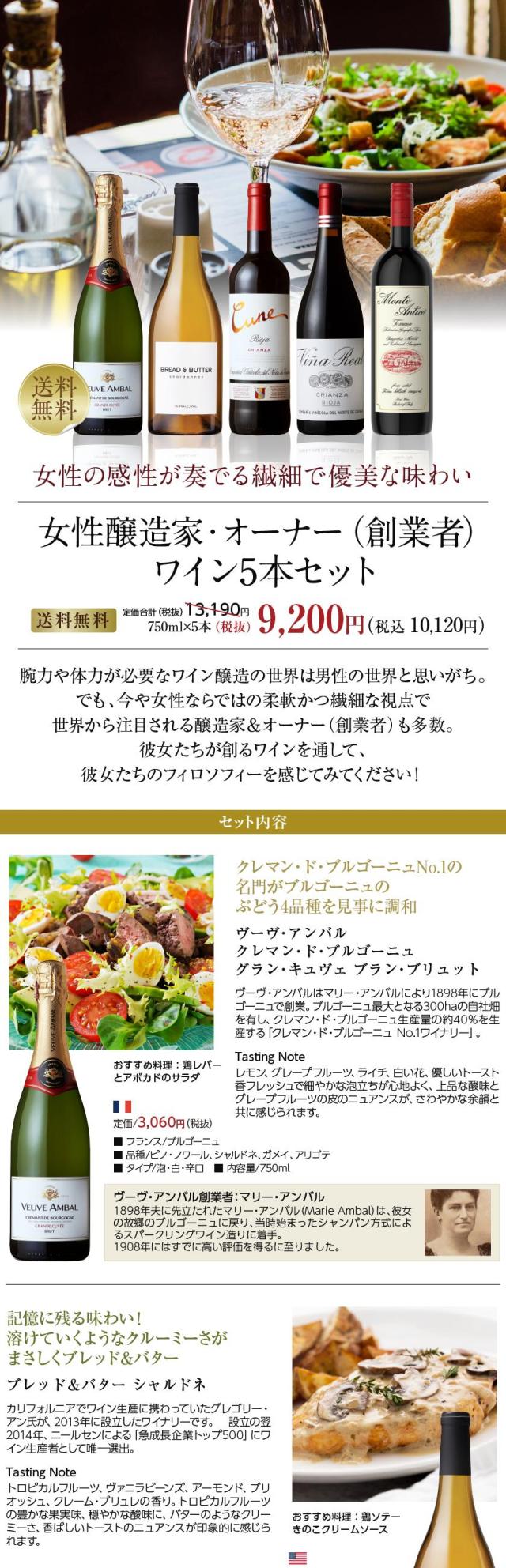 ワインセット 赤・白 女性醸造家 オーナー(創業者)ワイン 5本セット 送料無料 包装不可 他商品と同梱不可 飲み比べ フランス イタリア スペイン アメリカ