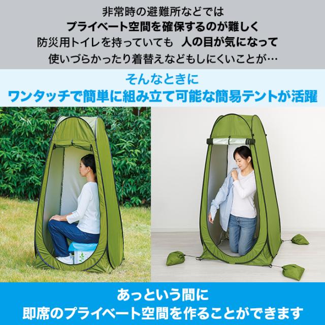 ●本品は緊急時の目隠し用テントです。山岳用、常設用としてのご使用はお避けください。本品生地にはっ水加工は施されていません。●テントを広げる際はフレームの力ではねることがありますので十分ご注意ください●開閉時は「まわりに人がいないか」「障害物などがないか」を確認の上、設置してください●設置場所は平坦で乾いた地面、水はけのよい場所を選び、不安定で危険な場所に設置しないでください●設置後は、転倒を防ぐため必ず四隅をペグで固定するか、砂袋に重りを入れてご使用ください●強風、豪雨、落雷、降雪時には使用しないでください●ご使用後は汚れを取り除き日陰などでよく乾かし、完全に乾いてから収納、保管してください●包装用の袋や収納袋で遊ばないでください。窒息など思わぬ事故の原因となります●お子様がご使用の場合、保護者の方はお子様から目を離さないでください●お子様が本品で遊ばないようご注意ください●本来の用途以外には使用しないでください●テント内およびテント周りでは火気厳禁