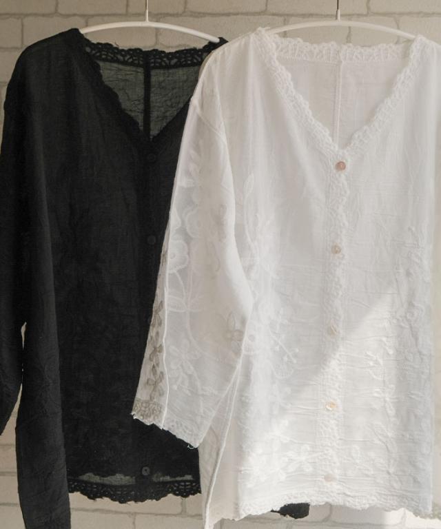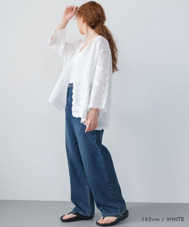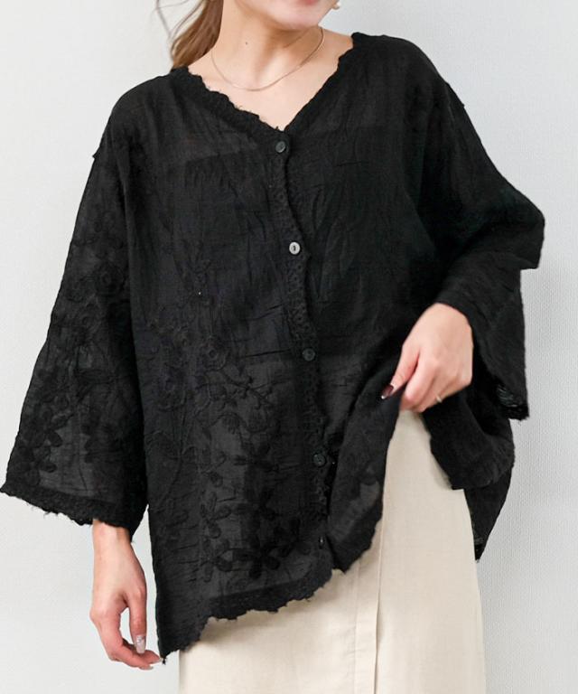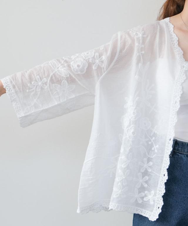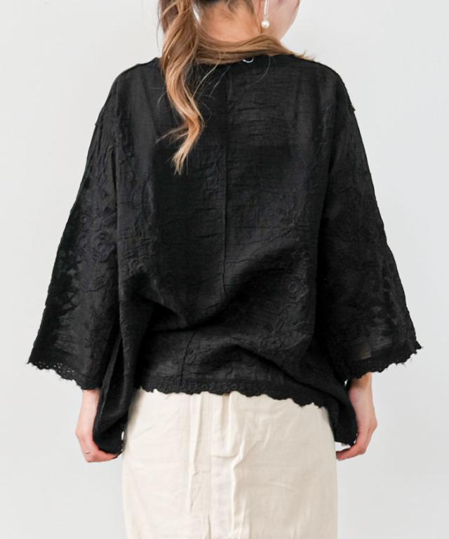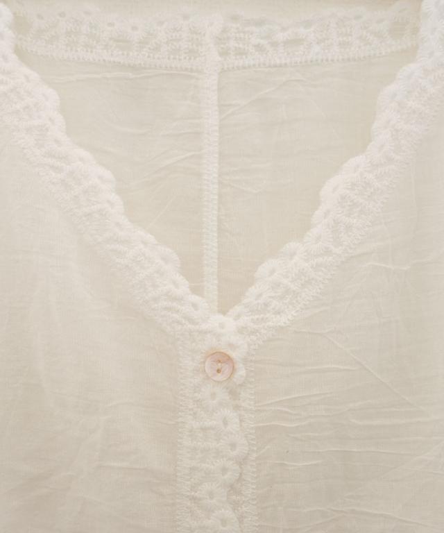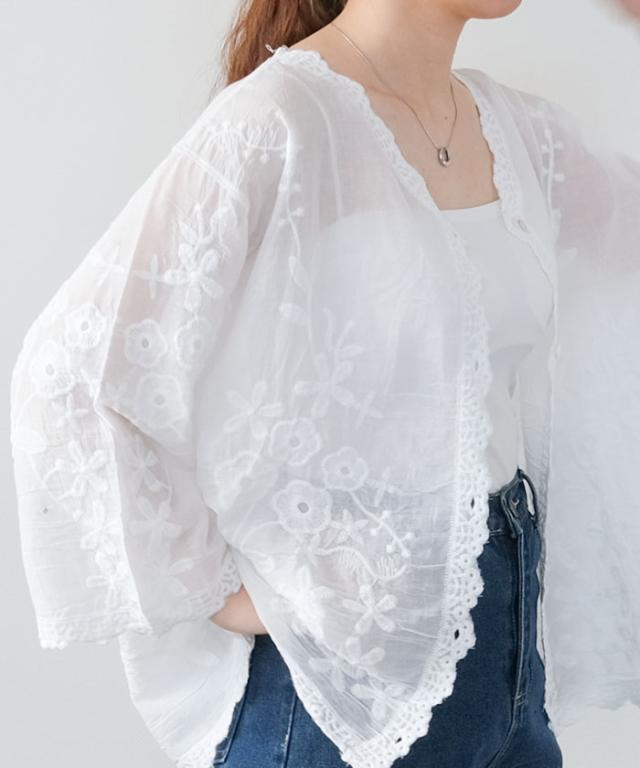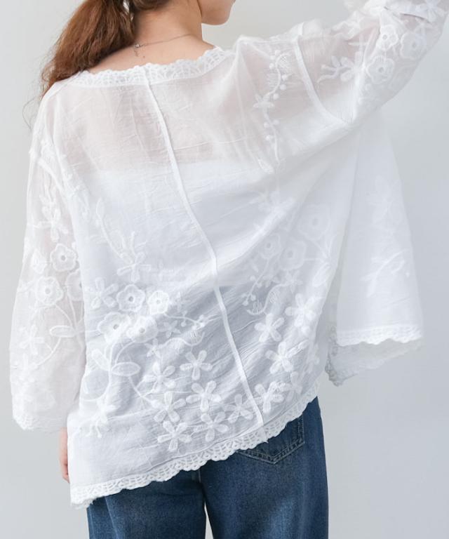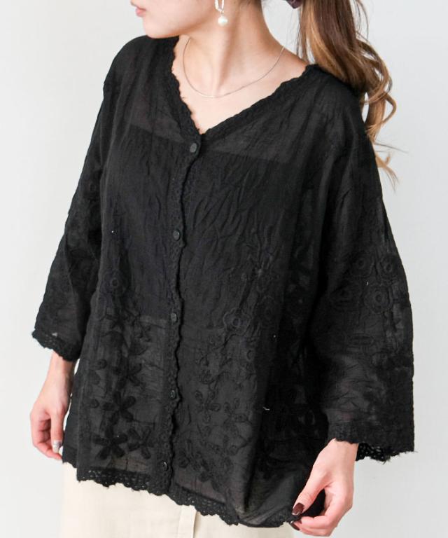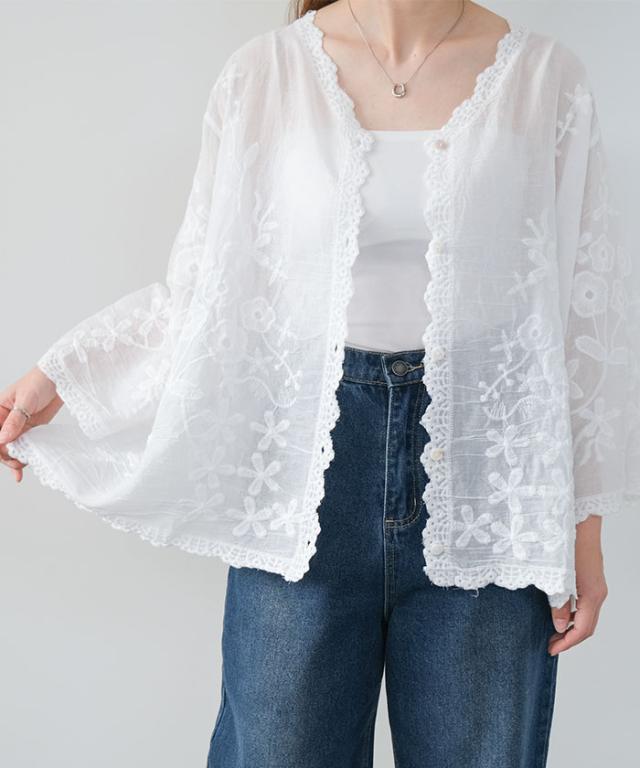 全体にあしらわれたレースが印象的なシアーブラウス。