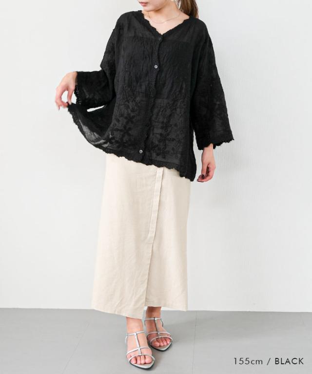 ほんのりと肌が透ける軽やかなデザインで、女性らしいやわらかな雰囲気を演出します。