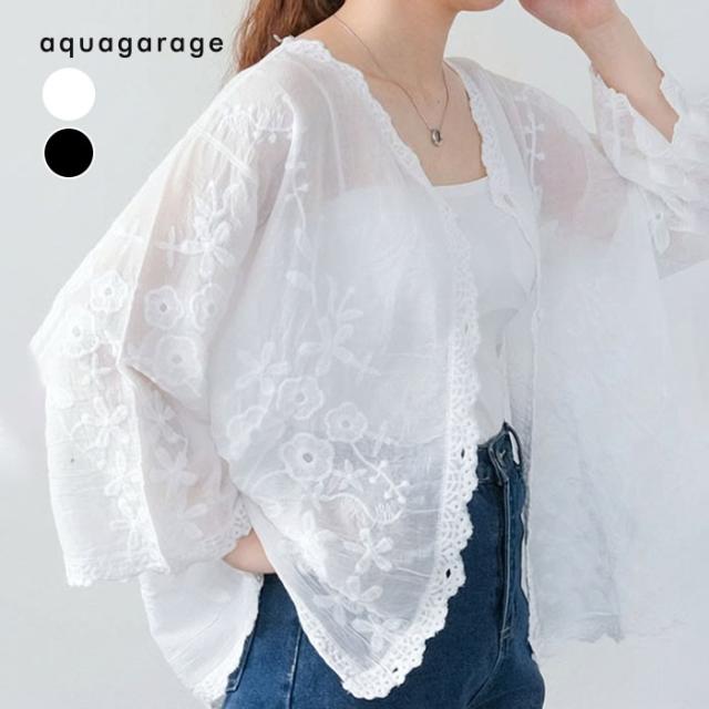 ≪ゆうメール便配送30・代引不可≫ シアーレースブラウス 春 夏 M レディース アクアガレージ aquagarage