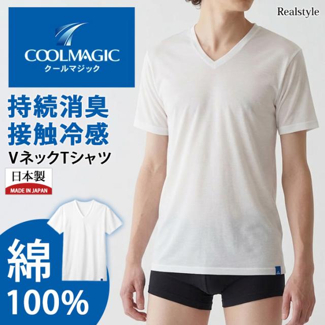 新作 グンゼ GUNZE クールマジック インナーシャツ メンズ 半袖 肌着 下着 Vネック 接触冷感 涼しい 消臭 汗対策 綿 夏 日本製 MCA515