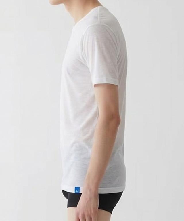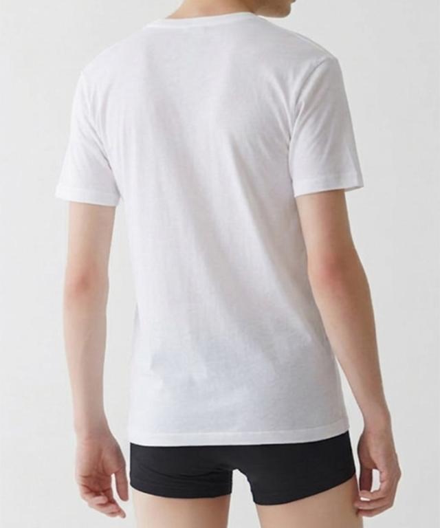 Vネック仕様で、ワイシャツからのインナーのチラ見えやはみ出しを抑えます