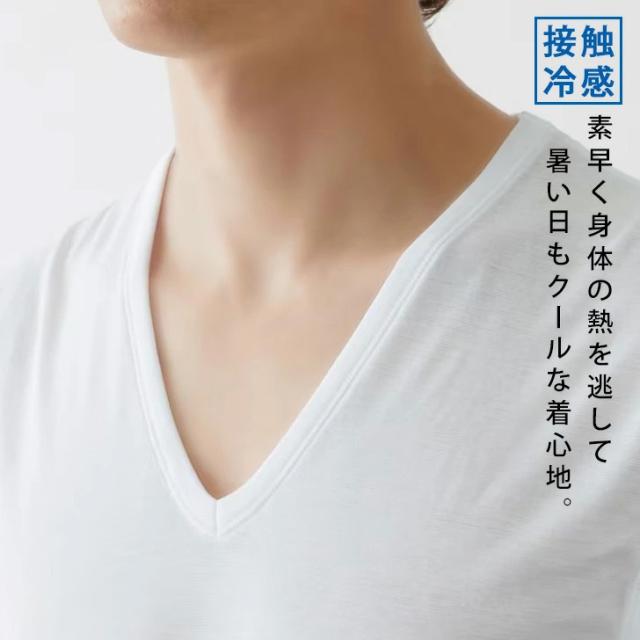 GUNZEクールマジック接触冷感持続消臭半袖VネックTシャツ