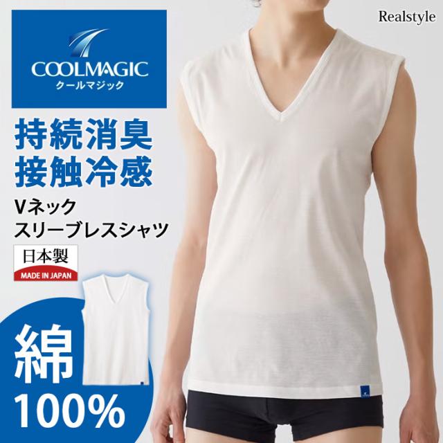 新作 グンゼ GUNZE クールマジック インナーシャツ メンズ 肌着 下着 Vネック スリーブレス 接触冷感 消臭 汗対策 綿 夏 日本製 MCA518