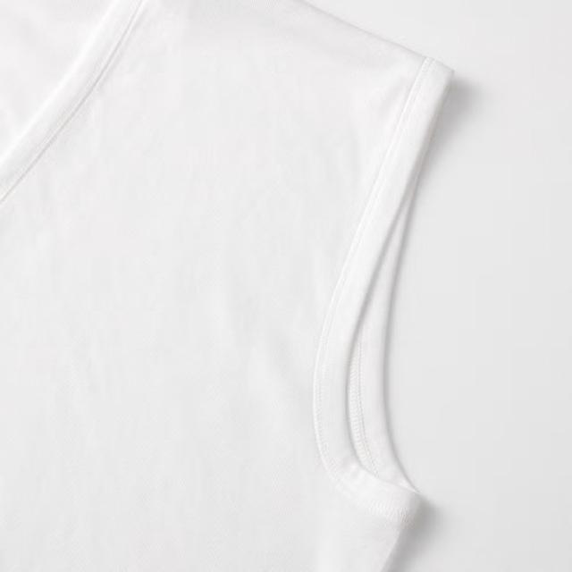 Vネック仕様で、ワイシャツからのインナーのチラ見えやはみ出しを抑えます