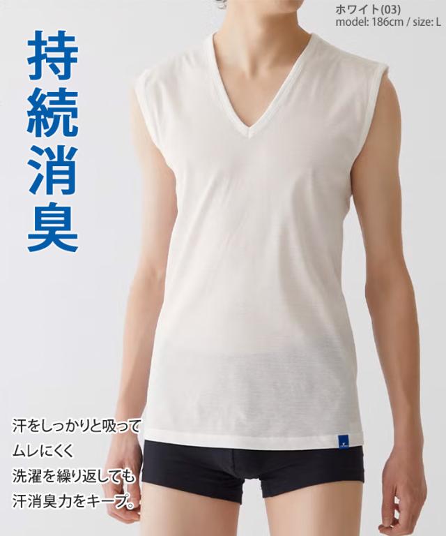 GUNZEクールマジック接触冷感持続消臭Vネックスリーブレスシャツ