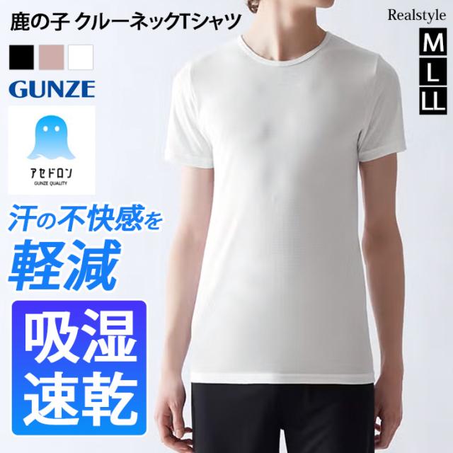 GUNZEアセドロン鹿の子吸湿速乾半袖クルーネックインナーTシャツ