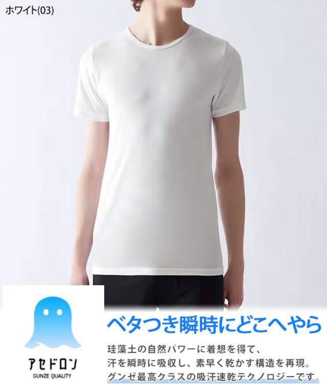 新作 グンゼ GUNZE アセドロン インナーシャツ メンズ 半袖 インナー 肌着 下着 鹿の子 丸首 吸湿速乾 抗菌 防臭 汗対策 MCA713
