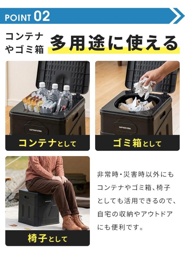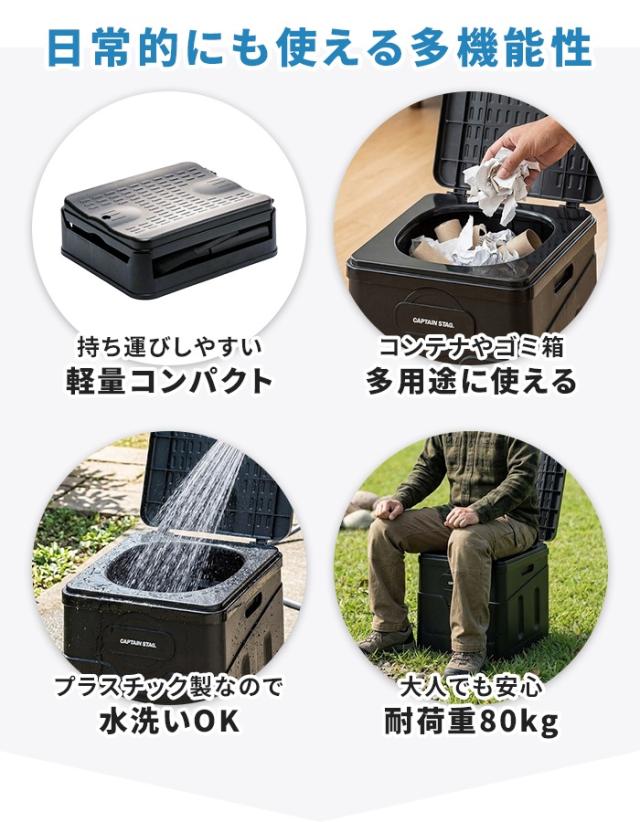 簡易トイレ 蓋付 ポータブル トイレ スクエア 水洗い可能 椅子 イス 踏み台 折りたたみ 収納ケース付 非常用トイレ ブラック 災害 防災 渋滞 車中泊 キャンプ ゴミ箱