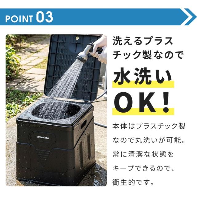 | 緊急時に役立つ簡易トイレ。 水洗いが可能で、清潔に保ちやすい樹脂タイプのトイレです。 蓋付きタイプで、臭いの拡散を抑えられます。 軽量で持ち運びやすく、使わない時もコンパクトに収納できるので便利。 収納ケース付きですっきり保管が可能です。 ゴミ箱やイスとしても使えるので、幅広いシーンで活躍します。 アウトドア用品としてはもちろん、渋滞や断水などの緊急時の備え、防災グッズとしても備えておきたいアイテムです。 |