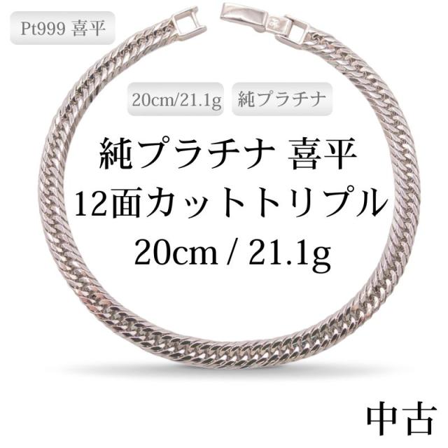 【新品仕上げ中古】Pt999 純プラチナ GINZA TANAKA 喜平ブレスレット(12面カットトリプル) 20cm/21.1g 造幣局刻印・ホシエスマークあり(ホールマーク)