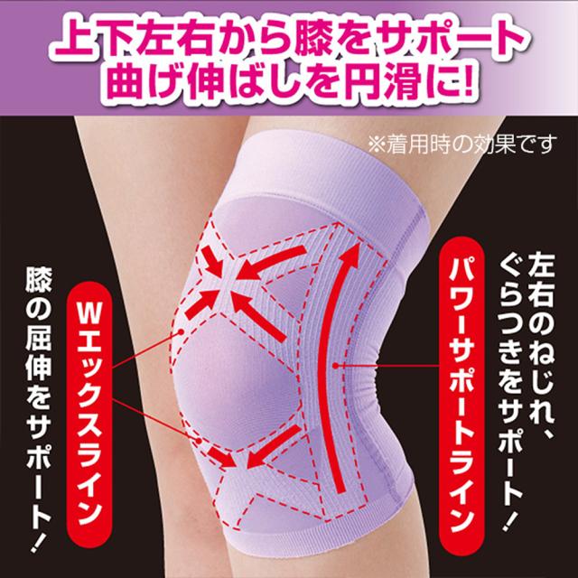 膝を上下左右360度から圧迫し、ダブル×テーピング理論をもとに設計されたサポーターです。