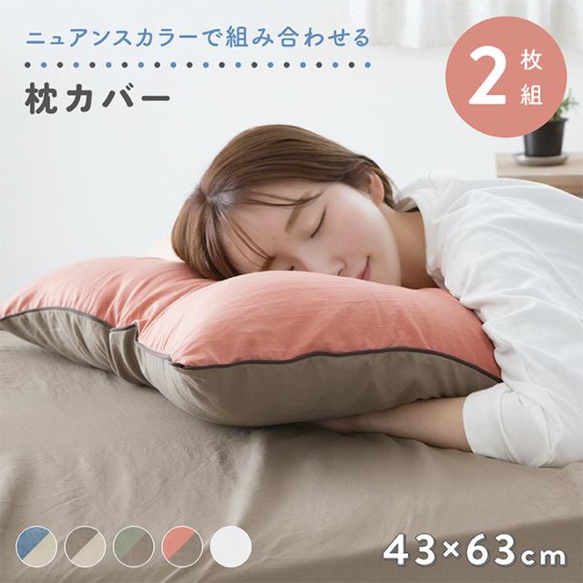 ぽっきり 枕カバー 2枚組 43×63cm リバーシブル ニュアンスカラー バイカラー 北欧 シンプル くすみカラー 寝具カバー おしゃれ 洗える 抗菌防臭 25A078