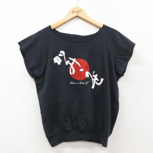 古着 半袖 スウェット メンズ 90年代 90s かみうぜ 神風 ラグラン クルーネック USA製 黒26feb03