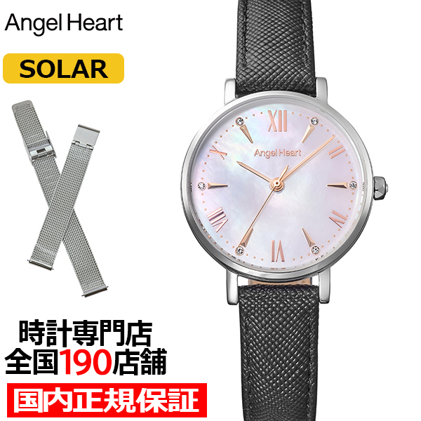 3月19日発売 エンジェルハート スパークルタイム ST29S-BK レディース 腕時計 ソーラー ホワイトダイヤル ブラック 革ベルト メッシュ替えベルト付き
