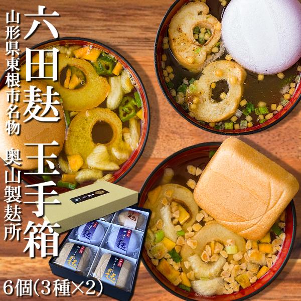 山形県東根市六田 奥山製麸所 即席スープ [六田麸 玉手箱6個入] なっとう汁×2個 みそカレーすーぷ×2個 呉汁×2個 贈答対応 送料無料 置き配可