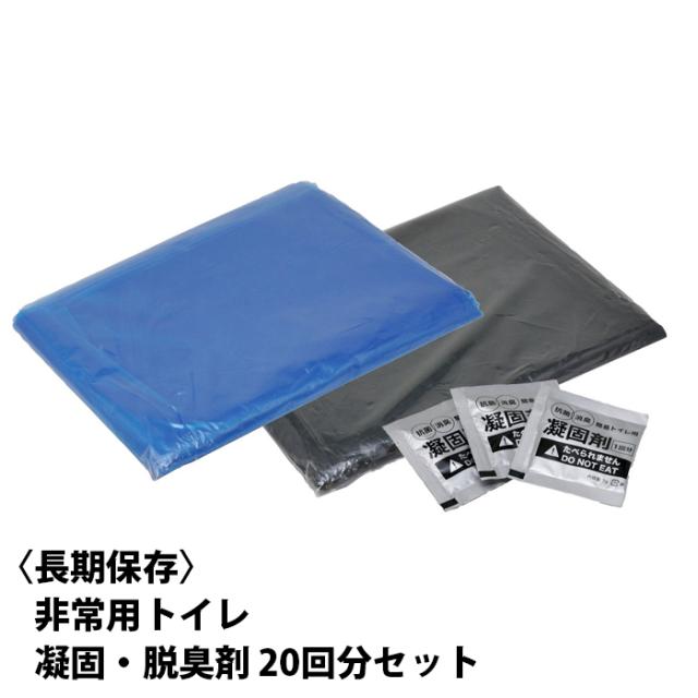 非常用トイレ 凝固・脱臭剤 20回分セット 10年保存 長期保存 排泄物袋付 断水 災害 防災 備蓄 緊急 地震 簡易トイレ 介護 アウトドア キャンプ 渋滞