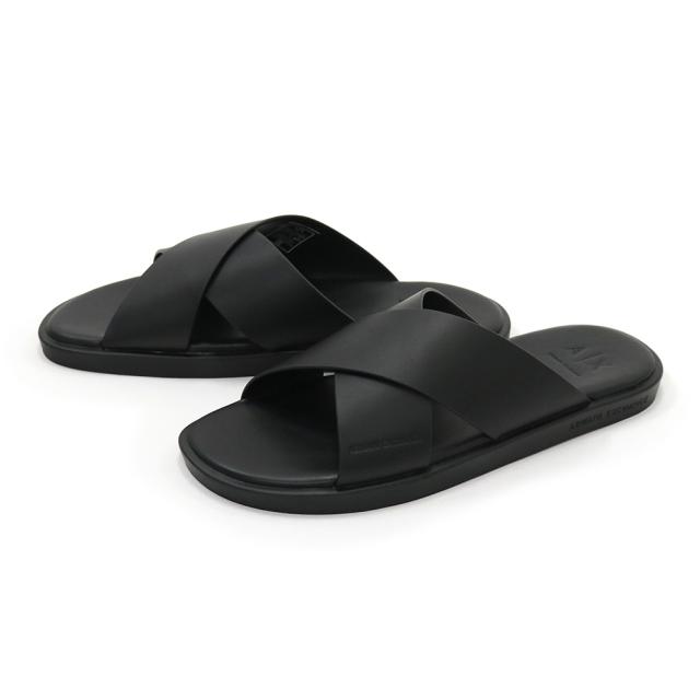 ARMANI EXCHANGE アルマーニ エクスチェンジ A/X メンズレザーサンダル XM002619 AF10848 ブラック 2026春夏新作