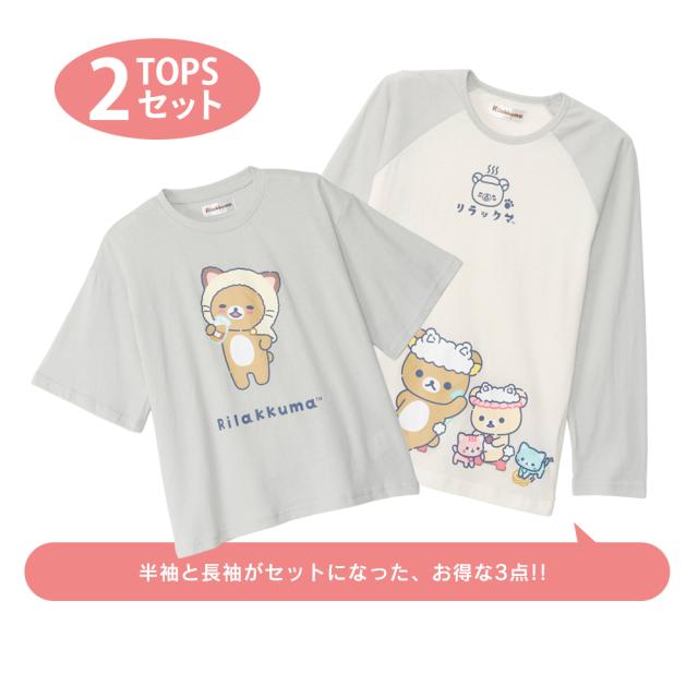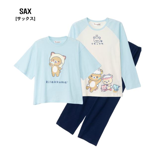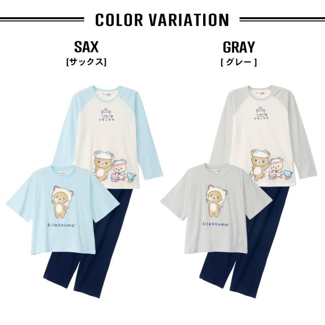 リラックマ パジャマ 2TOP 綿100 天竺 Tシャツ素材 130 140 150 160 サックス グレー ピンク サックス 子供 キッズ ガールズ キャラクター かわいい ギフト プレゼント