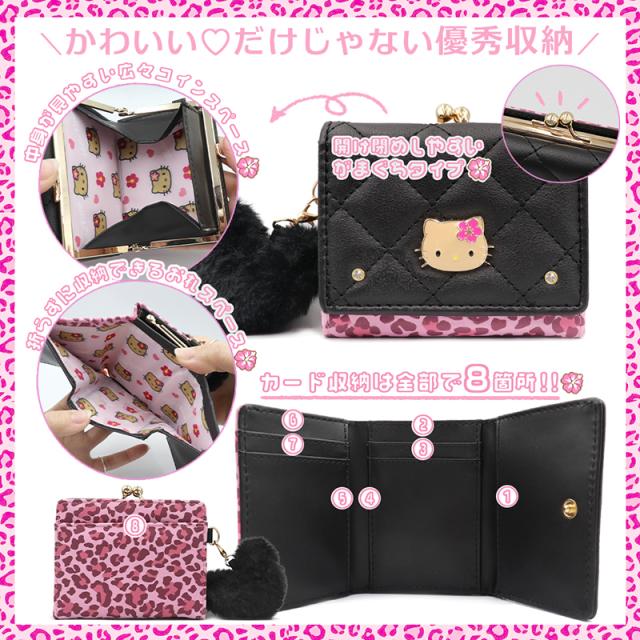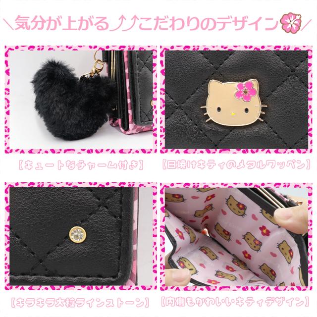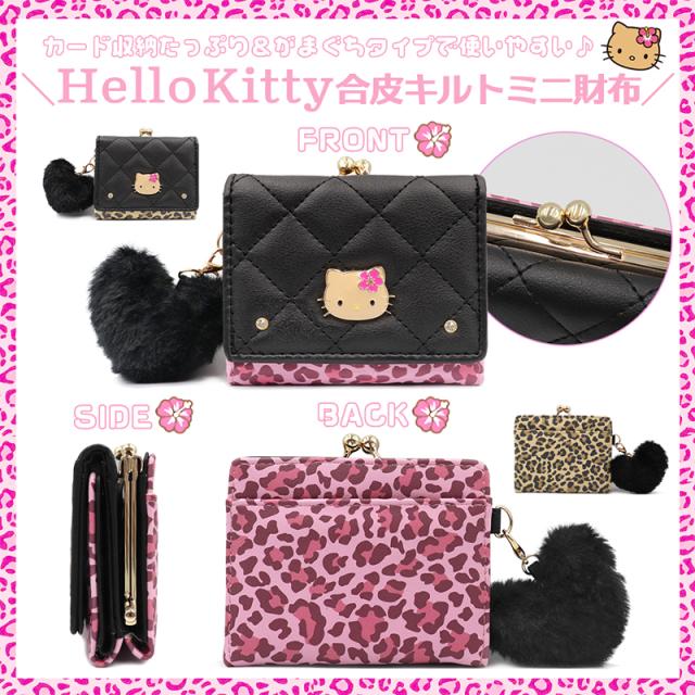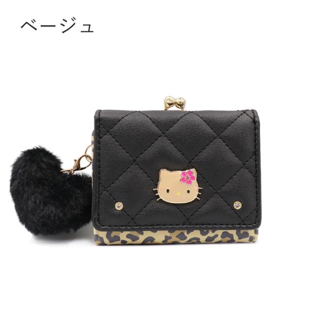 ハローキティの 日焼けキティ 合皮キルトヒョウ柄口金ミニ財布
