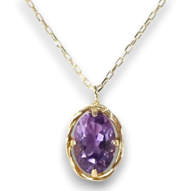 10金(K10) アメジストペンダント ネックレス オーバルミックスカット【誕生石2月】 【ギフトラッピング済み】