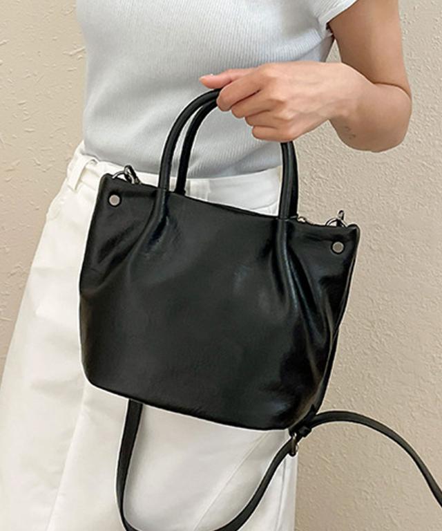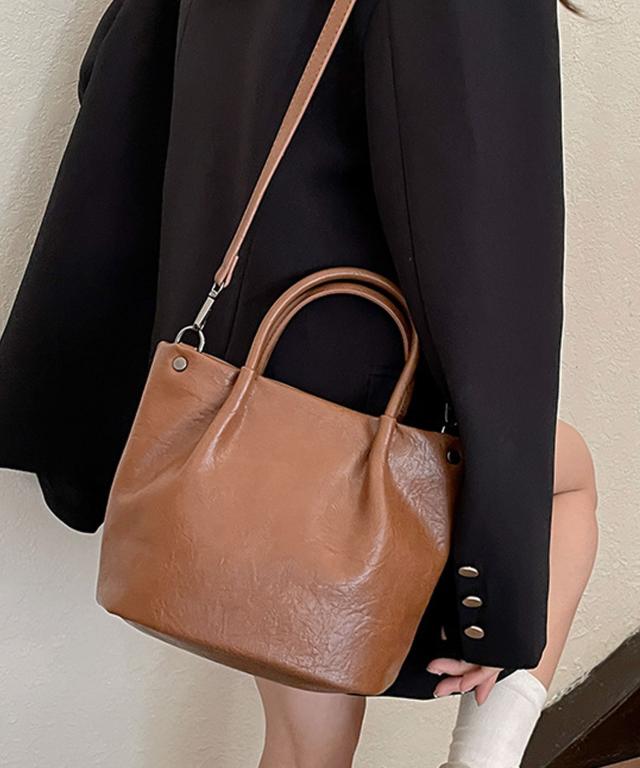 【ワッシャーレザーが上品なバケツバッグ/ハンドバッグ/ショルダーバッグ】