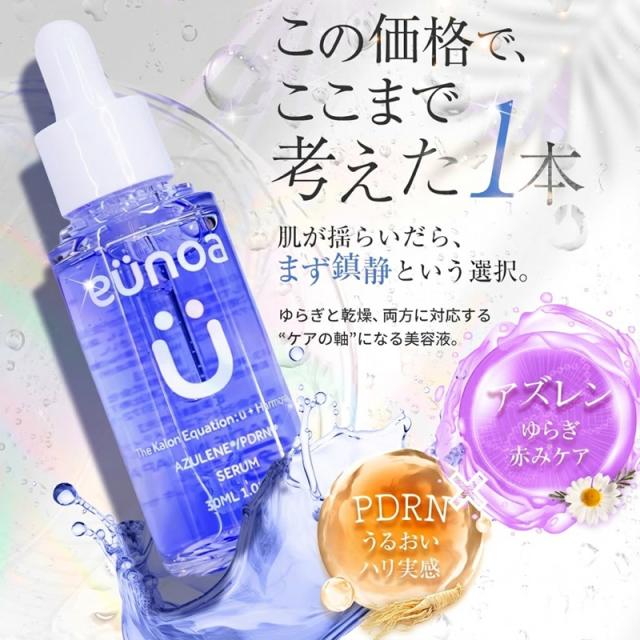 eunoa ユノア アズレン PDRN セラム 30ml (定形外郵便送料無料) 美容液 セラム 化粧水 毛穴ケア 乾燥対策 保湿 ニキビ跡 ゆらぎ CICA ヒアルロン酸 PDRN アズレン ナイアシンアミド 高麗人参 スキンケア 韓国コスメ
