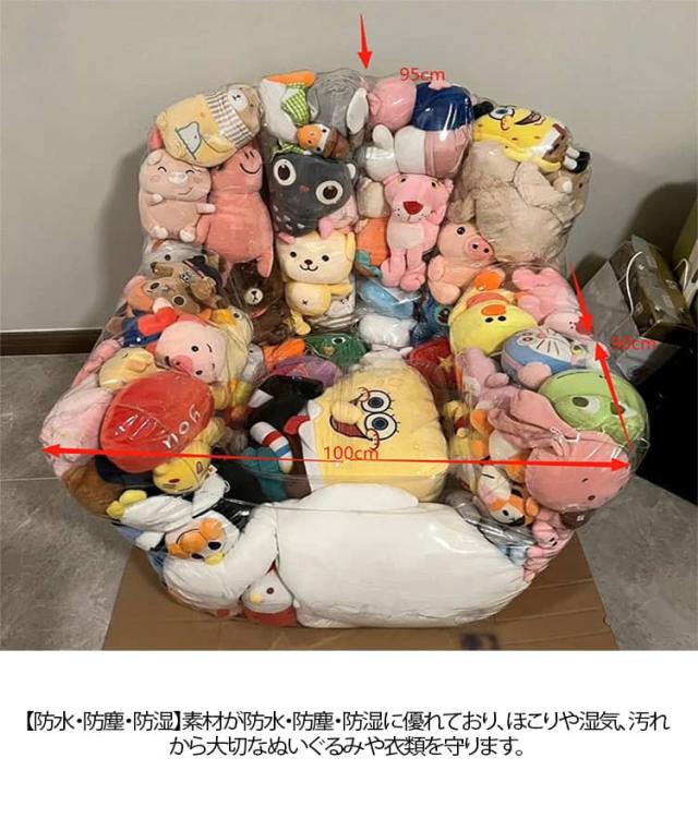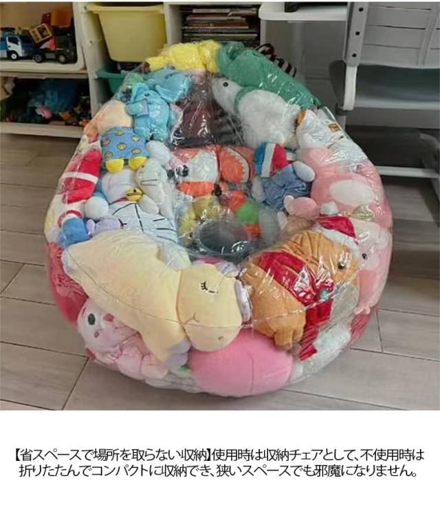 | 【おもちゃ収納チェア】 透明ソファおもちゃ収納チェアは、収納時に中身が一目でわかるように設計されています。 【ファスナー付きで取り出しが簡単】 大きなファスナーが付いているので、中身の出し入れがラクラク。子供でも簡単に使うことができます。 【防水・防塵・防湿】 素材が防水・防塵・防湿に優れており、ほこりや湿気、汚れから大切なぬいぐるみや衣類を守ります。 【ビーンバッグチェアとしても使用可能】 中にクッション材や布団などを詰めれば、すぐにビーンバッグチェアに変身。くつろぎのスペースを作れます。 【省スペースで場所を取らない収納】 使用時は収納チェアとして、不使用時は折りたたんでコンパクトに収納でき、狭いスペースでも邪魔になりません。 【大容量で多用途に使える】 ぬいぐるみはもちろん、衣類、布団、雑貨など様々なアイテムをまとめて収納でき、すっきりと片付けられます。 | |
