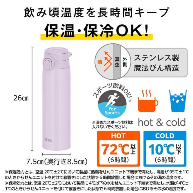 ステンレス製魔法びん構造なので高い保温・保冷力。