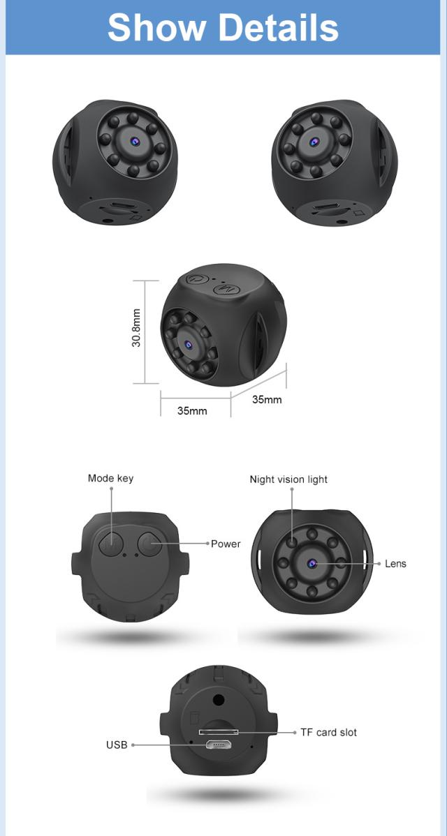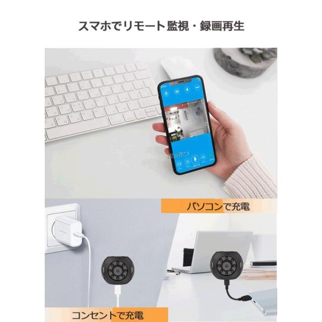 超小型防犯カメラ WiFi対応 監視カメラ 内蔵バッテリー 動体検知 赤外線暗視 録画対応