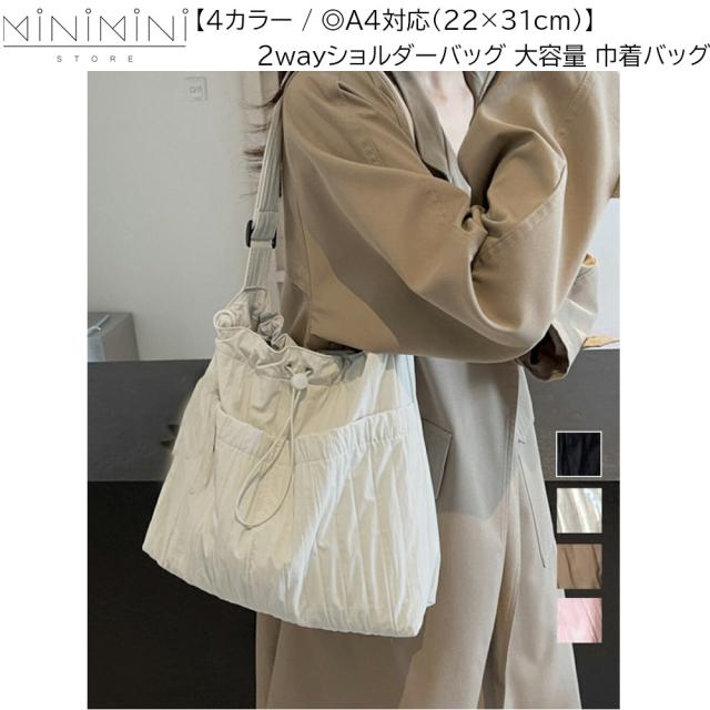 MINIMINISTORE ショルダーバッグ 大容量 巾着バッグ 肩掛け A4収納可能 手提げ鞄 大人かわいい マザーズバッグ ドローストリング付き 斜め掛け 77DEXUAN-001