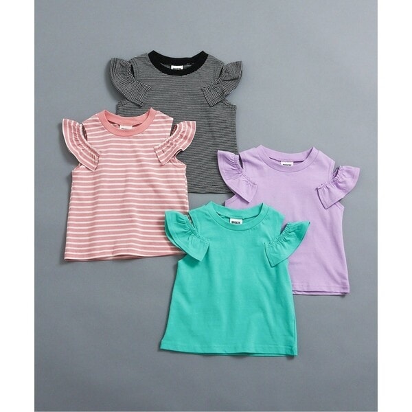 BREEZE(ブリーズ)の半袖Tシャツ「WEB限定 オープンショルダーフリルTシャツ」は、手頃な価格と豊富なバリエーションが人気!通園・通学にも使えるデザインが多く、着回し力抜群です!