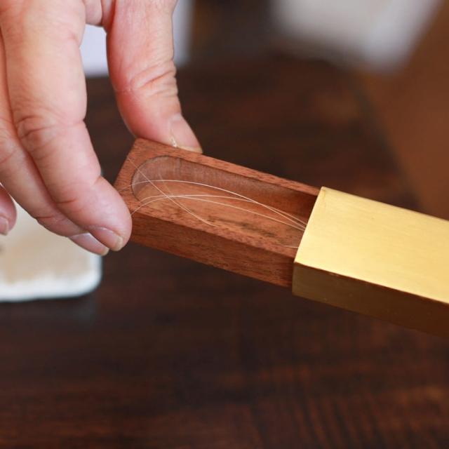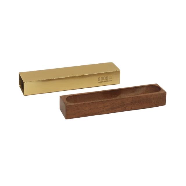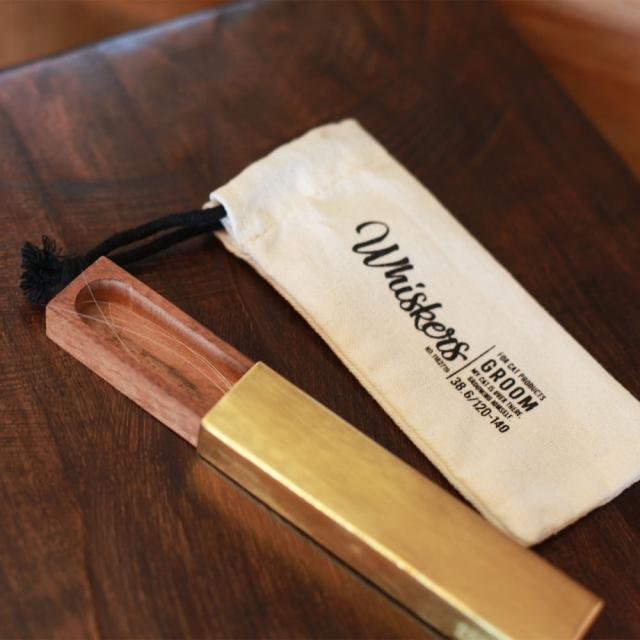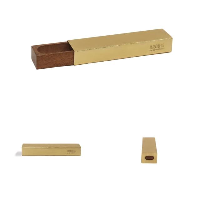 真鍮のような落ち着いた色合いのアイアンと、あたたかみのあるアカシアの木を組み合わせた『GROOM (グルーム) ねこひげケース』。