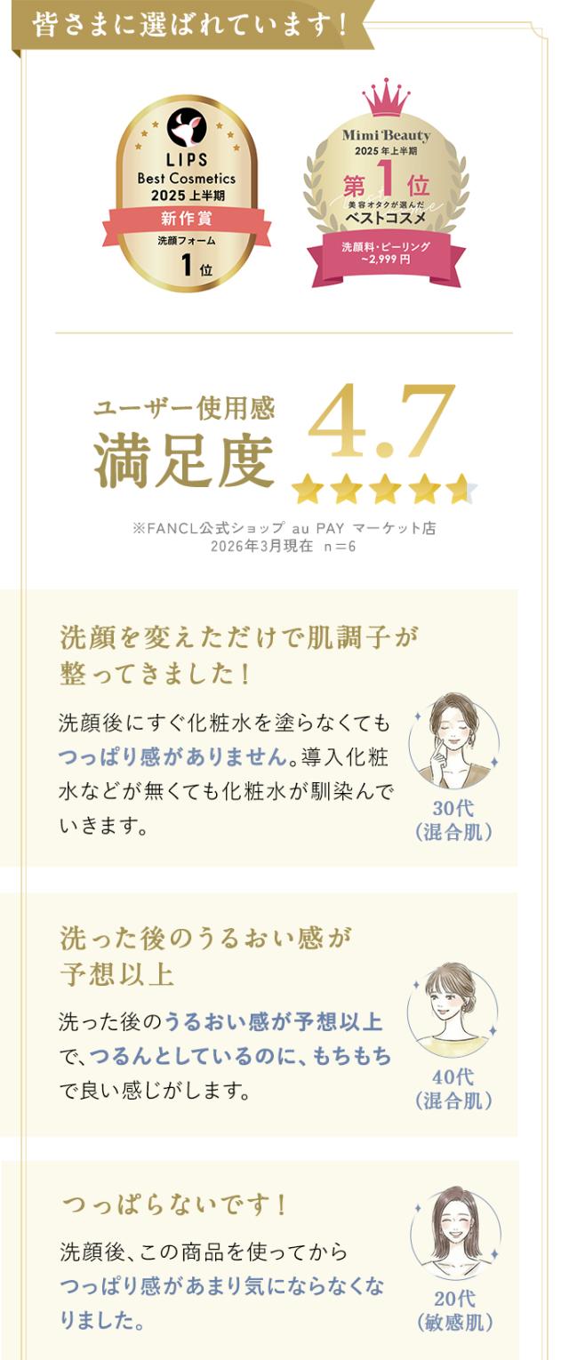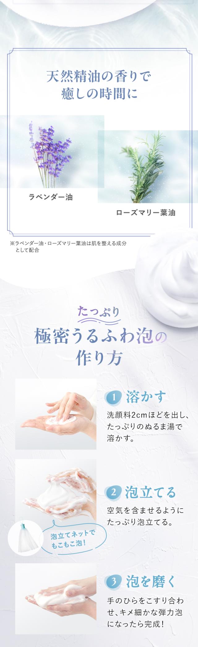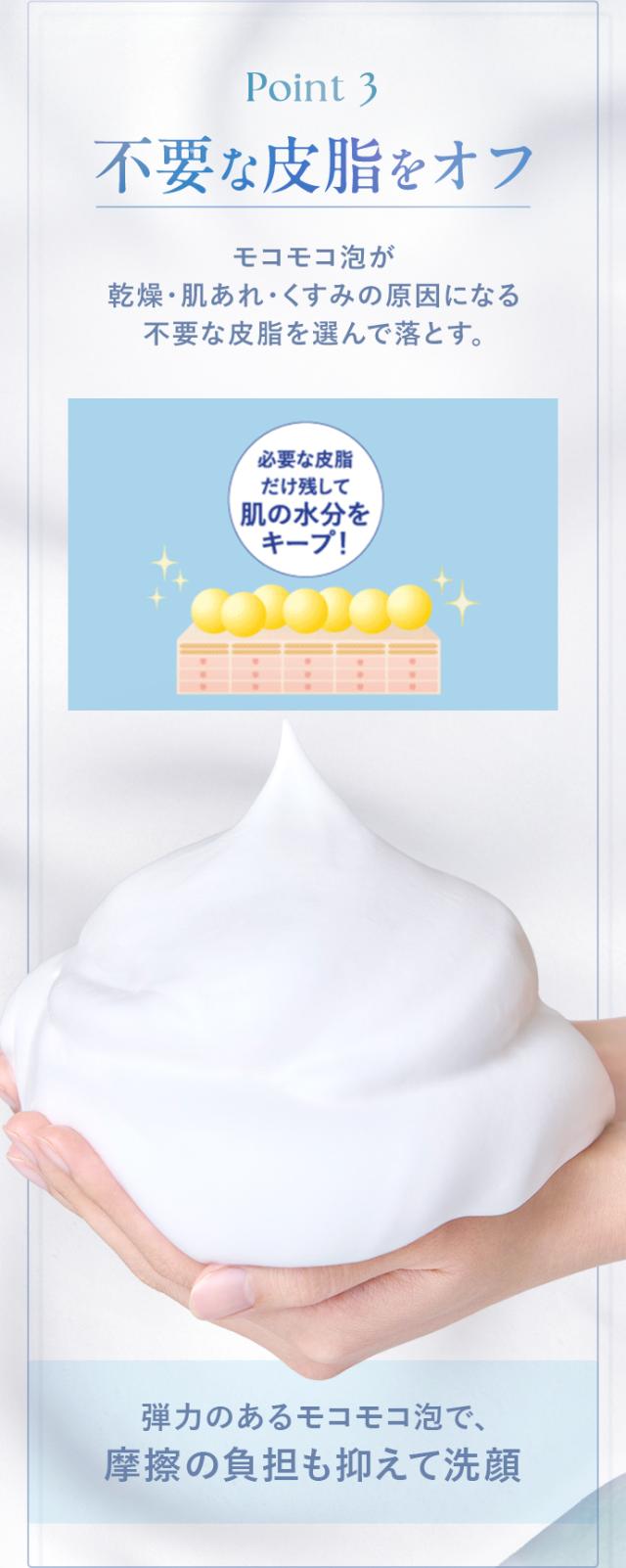 もこもこの泡で、肌のうるおいを守り、みずみずしく透明感のある肌に整えます。