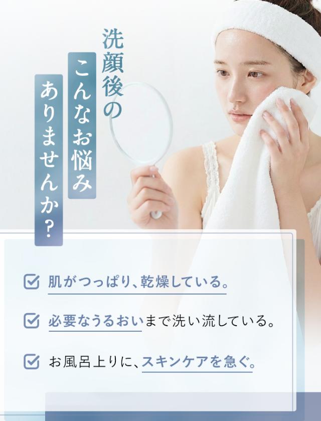 乾燥・肌あれ・くすみの原因である不要な皮脂・角層は洗い流します。
