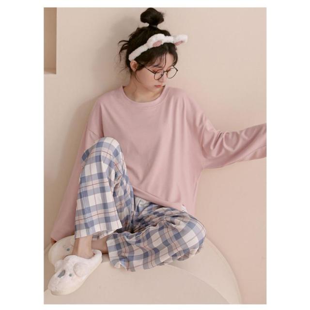 パジャマ セットアップ レディース チェック柄 ルームウェア ゆったり 部屋着 長袖秋冬 上下セット 安い 寝巻き ナイトウェア