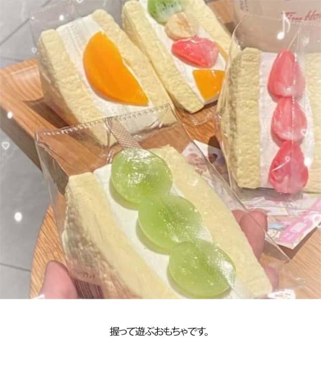 | フルーツサンド スクイーズ 握るぷにぷに 握って遊ぶおもちゃです。 見た目も触り心地も癒されます。 【可愛らしいデザインで目を惹く】手のひらサイズで握りやすく、ストレス解消トイとしてだけでなく、机の上の可愛いインテリアとしても活躍。気軽に写真を撮れば、SNS 映えするオシャレな投稿素材になります。 ※食べ物ではございませんので、口には入れないようご注意ください。 | |