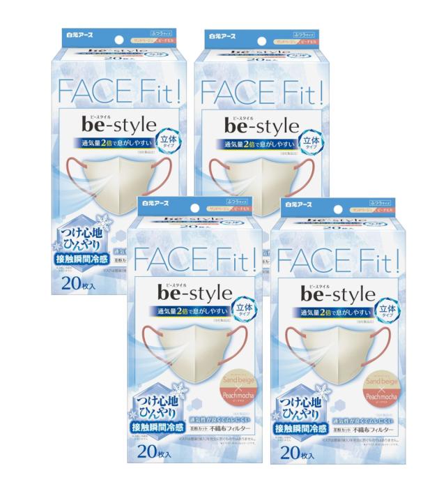 ビースタイル 立体冷感タイプ ふつうサイズ サンドベージュ×ピーチモカ 20枚入×4【4個セット】 夏用 冷感マスク