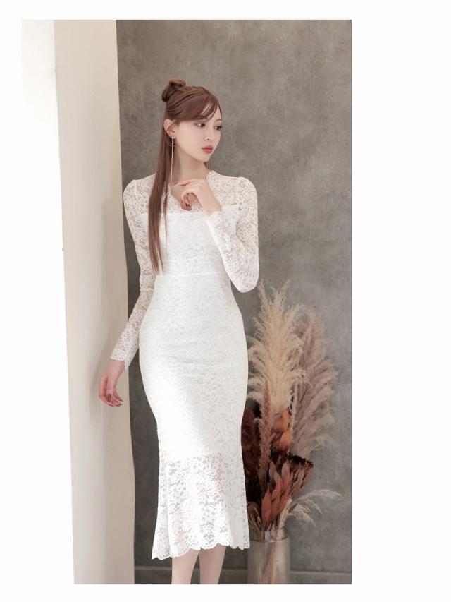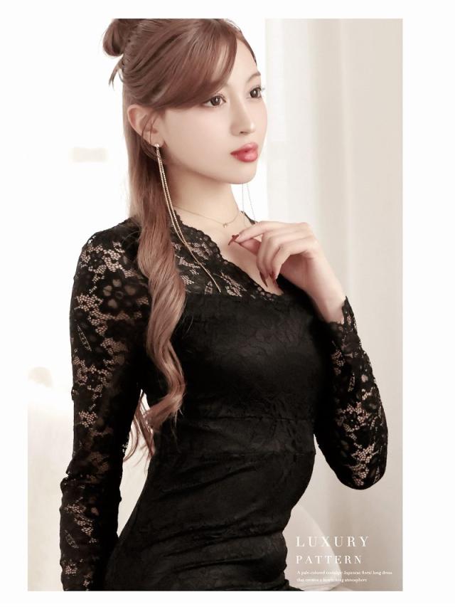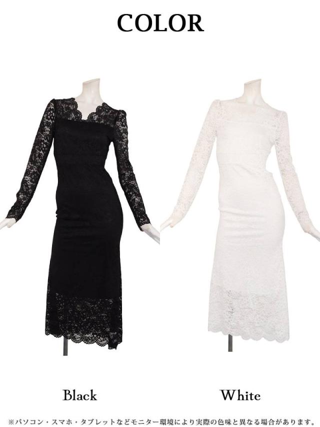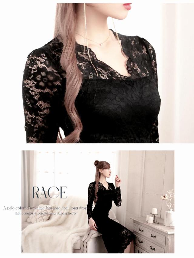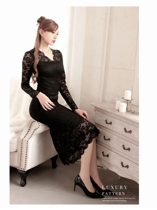 キャバワンピース DaysPiece 韓国風 総レースワンピース ロングワンピース 長袖 アイラッシュレース キャバ ワンピー